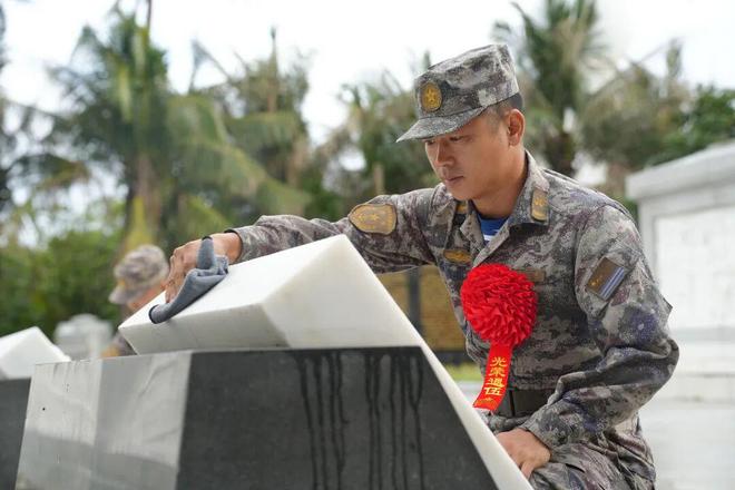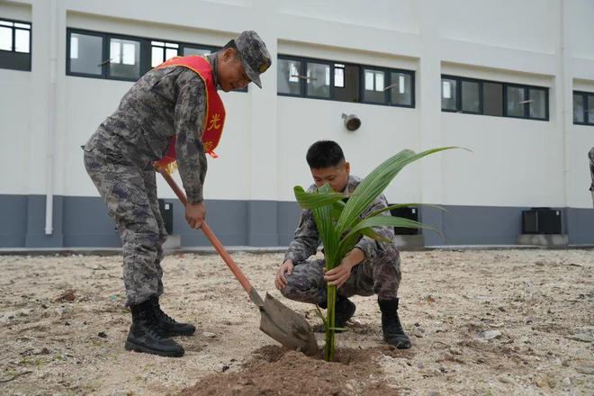 近日,海军西沙某部组织满服役期老兵来到驻地烈士陵园,和战友一同种下一株椰子苗,表达对先烈的敬意,同时象征着继续和战友们并肩作战!
