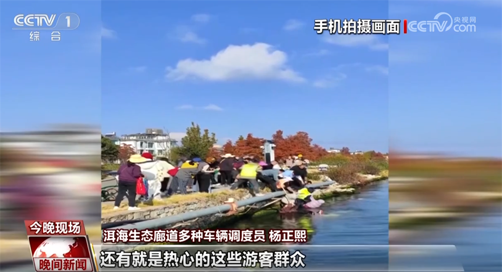 云南大理洱海边,一辆租用的四轮亲子车因操作失误冲入水中,车内三名游客被困。危急时刻,洱海生态廊道工作人员杨东与杨正熙第一时间跃入水中施救。