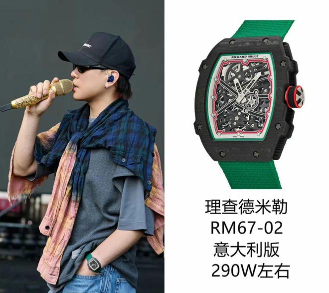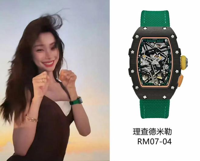 比如手表,胡彦斌9月在新加坡音乐节戴的那块,和易梦玲社交账号里晒的,都是绿松石表带的理查德米勒。