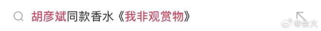 随手一搜胡彦斌,好多记录都指向他常用“我非观赏物”这个味道;而巧的是,易梦玲之前回复粉丝问她用哪款香水时,晒出来的也正是这一瓶。