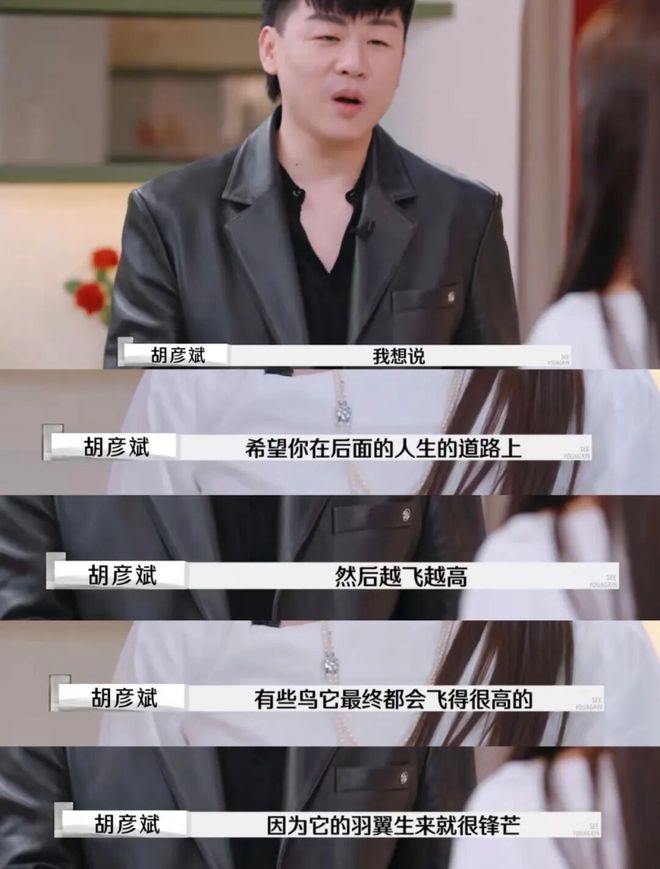 面对黄圣依的婚姻困境,他以“有些鸟最终都会飞得很高,因为她的羽翼生来就很锋芒”传递祝福,既肯定对方的潜力,又避免了说教。