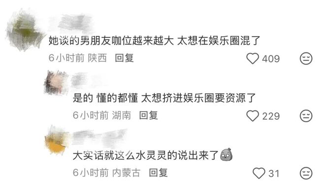 在胡彦斌和易梦玲的接吻视频流出后,还有不少人因此各种恶意揣测她,什么“谈的男朋友咖位越来越大”啊,什么“太想挤进娱乐圈要资源了”啊,什么“属实有点太急了”啊...