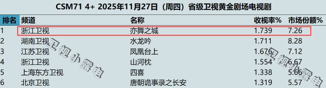 不过,这两部剧还跟观众卖关子呢,反倒是浙江卫视率先抬上来一部中年偶像剧《亦舞之城》,仅播出3集收视率就冲上卫视榜单第一的位置,看来这回观众真的有剧可追了!